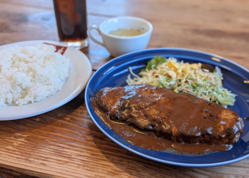 うまい。美味すぎる。サラダとスープとハンバーグとライスというシンプルなセットですが、300gのボリューミーなハンバーグでお腹も大満足。ごちそうさまでした。