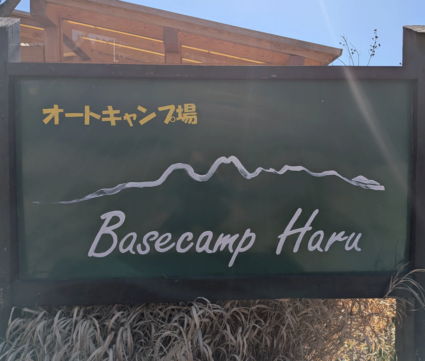 若干早めの到着にも関わらず、チェックインさせて頂けるとの優しいお言葉を頂き、ステッカー購入と共に、本日のキャンプ場「ベースキャンプはる」さんの「Gサイト」へ。