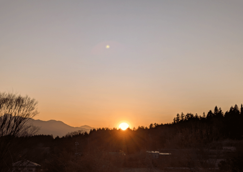 美しい。空気が澄んでいて、山に沈んでいく夕焼けが本当に素晴らしく、しばらく夕焼け鑑賞。からのマジックアワー。