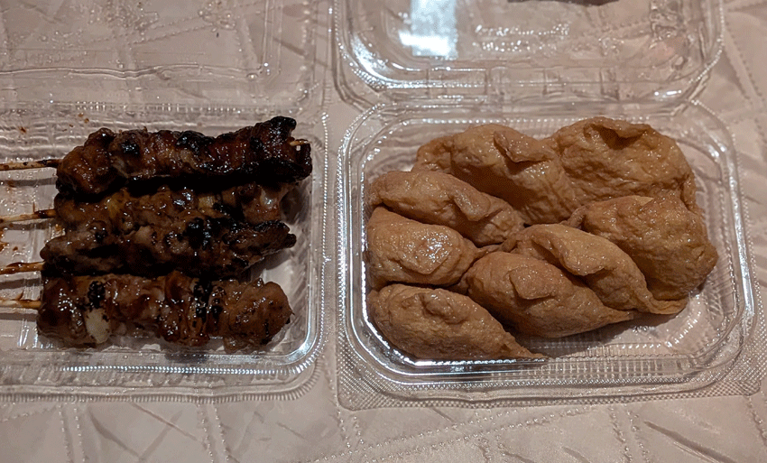 スーパーで買った、三角いなりと焼き鳥。当然冷たくなってましたがそこは致し方なし。まぁそれなりに美味しく頂きました。ごちそうさまでした。