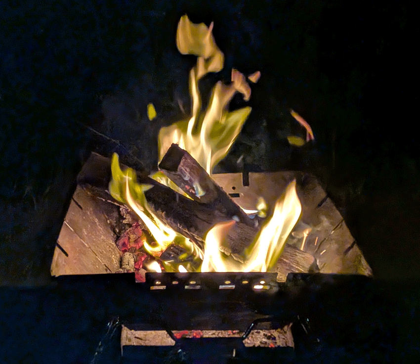 そんなこんなで時刻も19時近くなり、用意していた焚き火に着火。