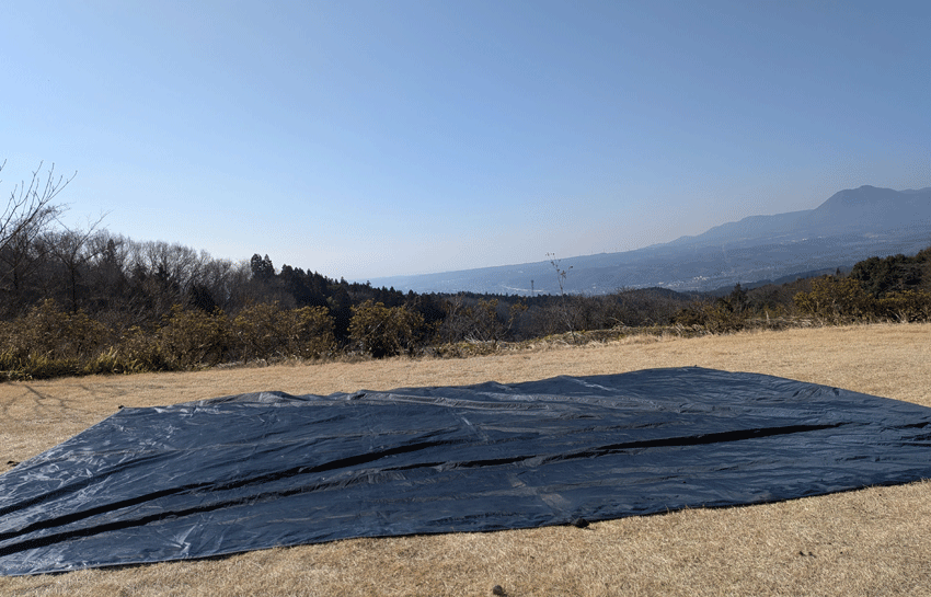最後にグランドシートを乾かして、21回目のおやじぼっちキャンプ完了。うん。良いキャンプ場でした。