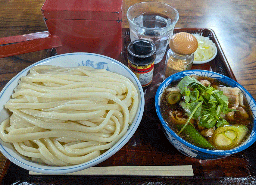 そしてうまい。美味すぎる。コシの強いうどんと味濃いめのつけ汁&具材。開店前こら行列が出来るのも納得のお味でした。最高。ごちそうさまでした。