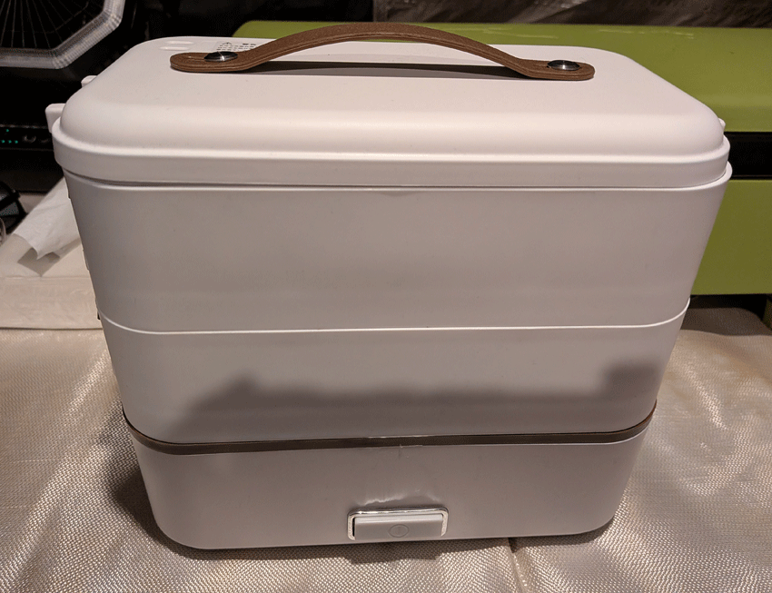 電気炊飯弁当箱。要は冷たくなった弁当を温めるための弁当箱です。米も炊けるらしいのですが、僕の目的はとにかく冷たい食材を温めること。