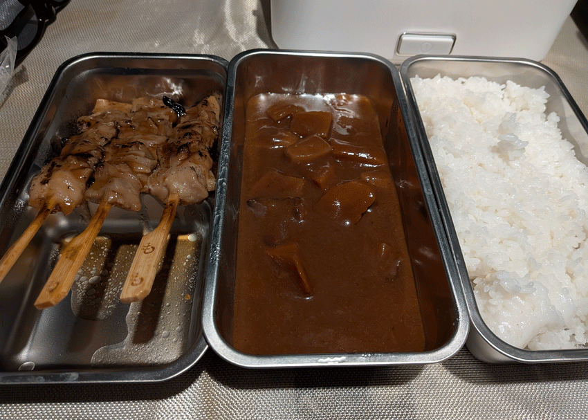 熱々、、、とまではいかないものの、ホカホカくらいには温まってました。確かに弁当を温めるには十分です。カレーは熱々が良かったけど。