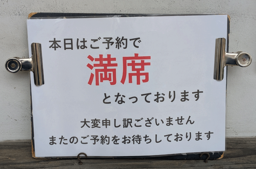 駐車場にもすんなり入ることができ、余裕綽々でお店の入り口に行くと、扉の前に貼り紙が。