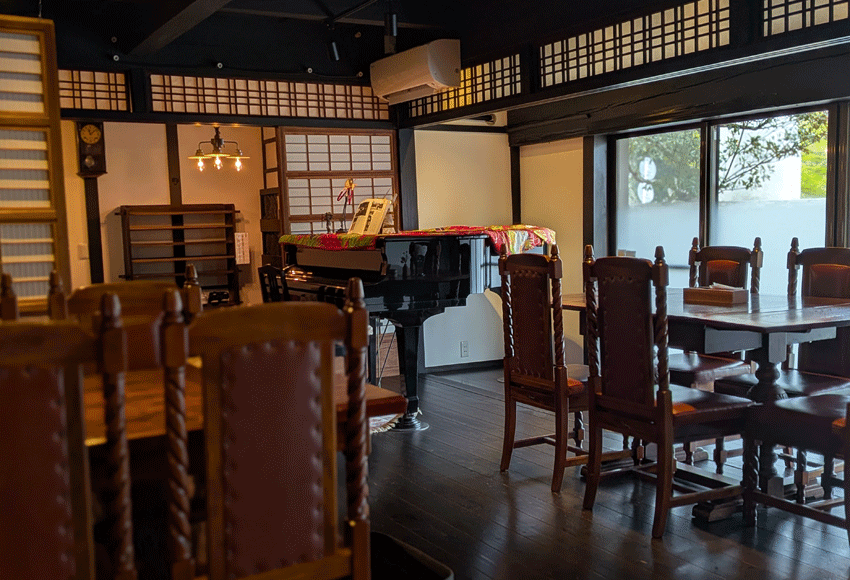料理だけでなく、店内の雰囲気も最高。古民家にグランドピアノが置かれた素敵空間で、和洋が絶妙なバランスでデザインされていて、とても落ち着きます。
