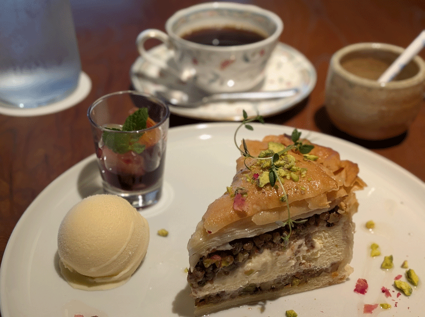優雅なランチの締めは、やはり極上デザートです。なんとなく頼んだケーキでしたが、どうやらこのお店の大人気メニューのようで、開店から30分ほど(10人くらい)で完売。あとから来たお客さんたちが本気で残念がってました。