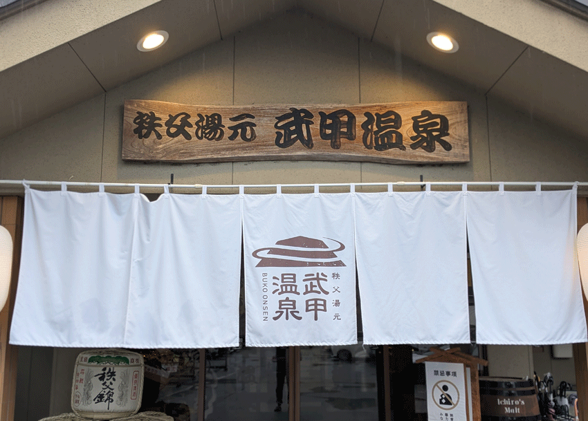 仕方がないので、次に近い温泉を探すと、20分くらいのところに「武甲温泉」とやらを発見。迷うことなくビショビショの体で車に乗り込み、温泉へと向かいます。