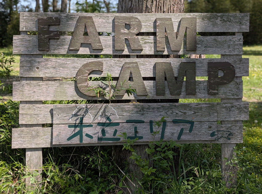あっという間に「農家の裏庭キャンプ場」さんに到着。特に看板があるわけでなく、農家の大きな家の広い裏庭がキャンプ場になっている感じ。