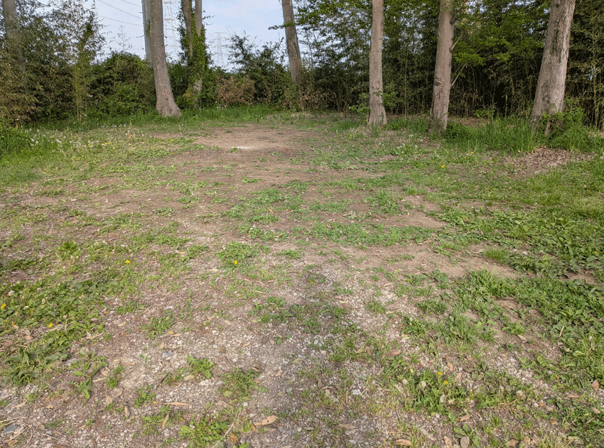 今日はデイキャンと宿泊含め、6組のキャンパーが来るとのことで、既に2組が農園エリアに設営を始めていたので、僕はまだ誰もいない木立ちエリアの方に。