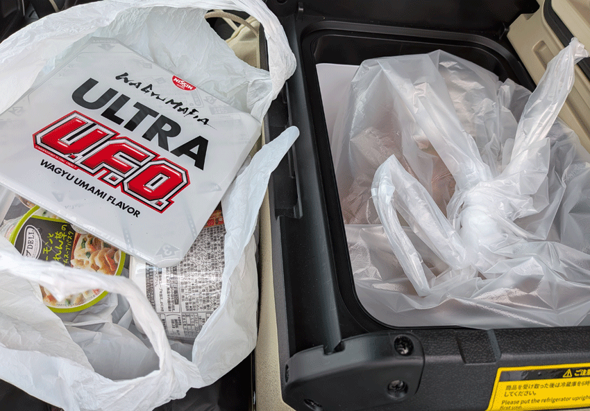 まだ13時過ぎで、温泉に行くのは早すぎるってことで、近くを散歩したりして時間を潰してみるものの数分で終了。昼メシを食ったばかりですが、先ほどのスーパーで設営後に食おうと思っていたものを思い出し、セカンドランチ。