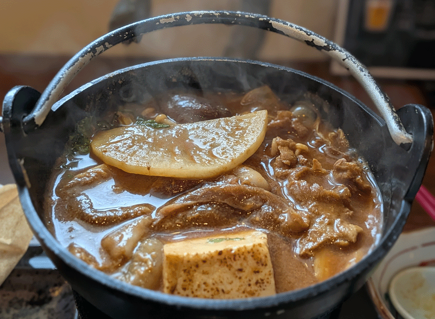 うまい。美味すぎる。猪肉ってもっとクセがあるのかと思っていたのですが、普通に美味しい。濃厚な味噌味の鍋とピッタリです。