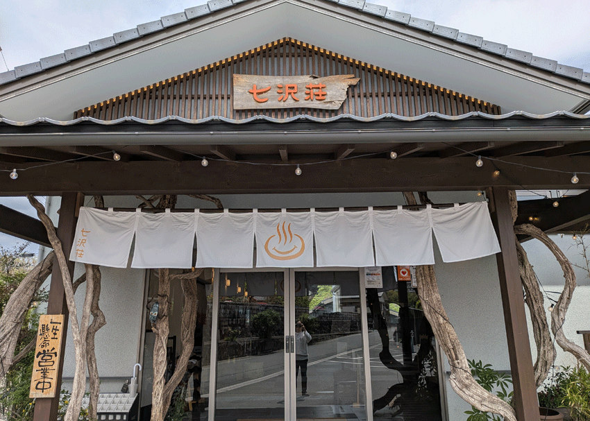 気付けば16時前。昼メシを頂いた「七沢荘」さんへ、今度は温泉を頂きに行きます。歩いても数分てことが分かったので、徒歩で散歩がてら向かいます。なんとなくネーミングや佇まいからも、決して真新しい施設ではなく、若干の不安を抱えながら受付を済ませて入湯。