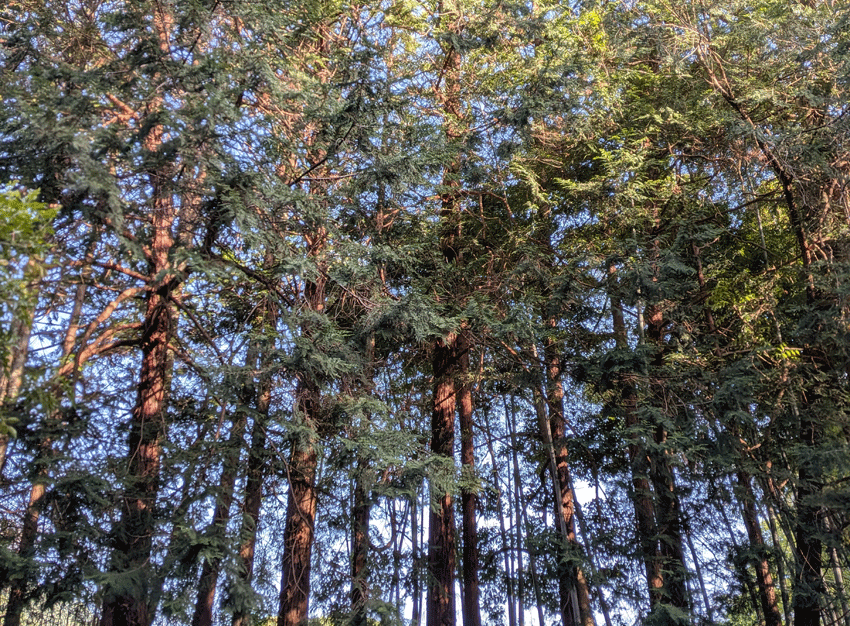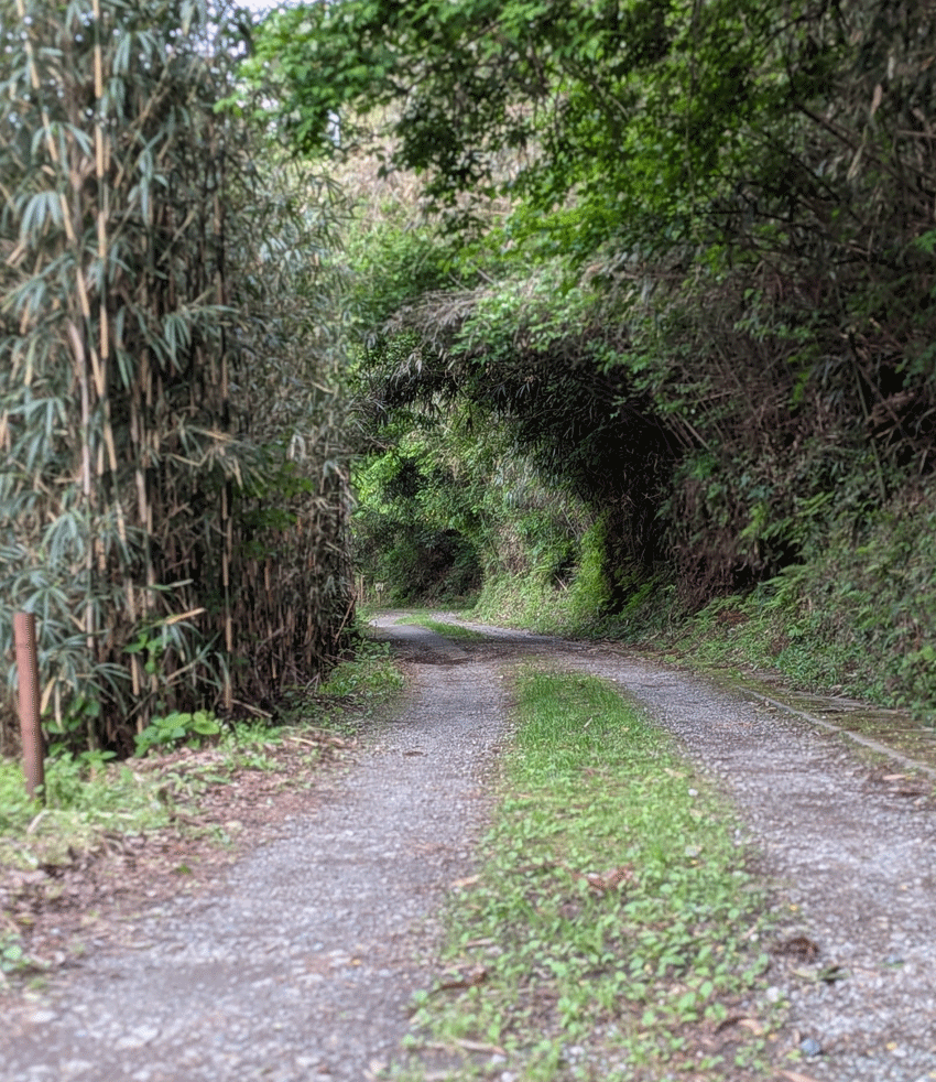 腹も満たされ、時間も12時のチェックインにちょうど良い感じ。車で数分走り、ジブリのような小道を抜けて