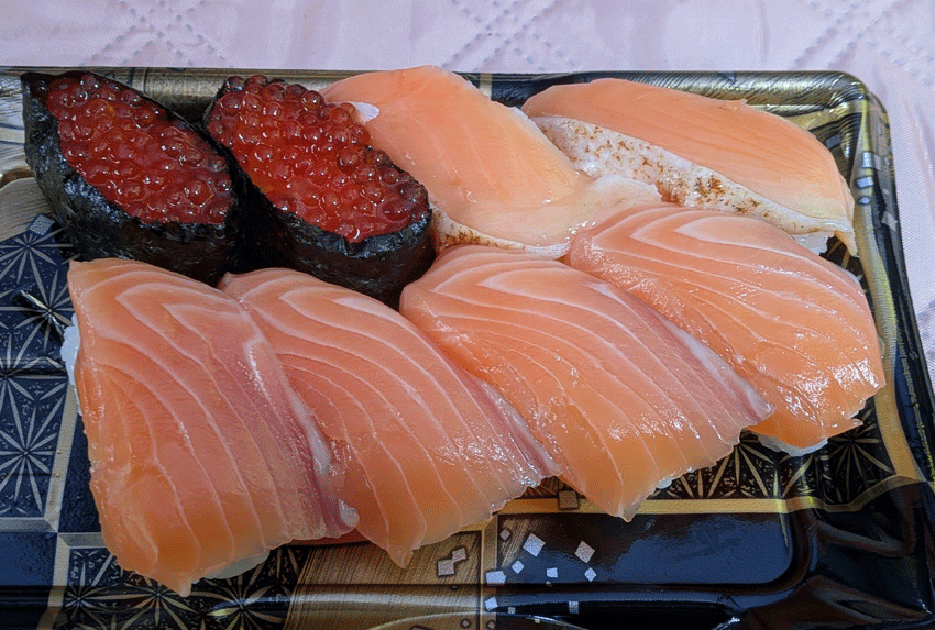 サーモン寿司を食ったあと、ベッドに横になってしばらくゴロリ休息。川の音と鳥の声、心地よい風を感じながらzzz。