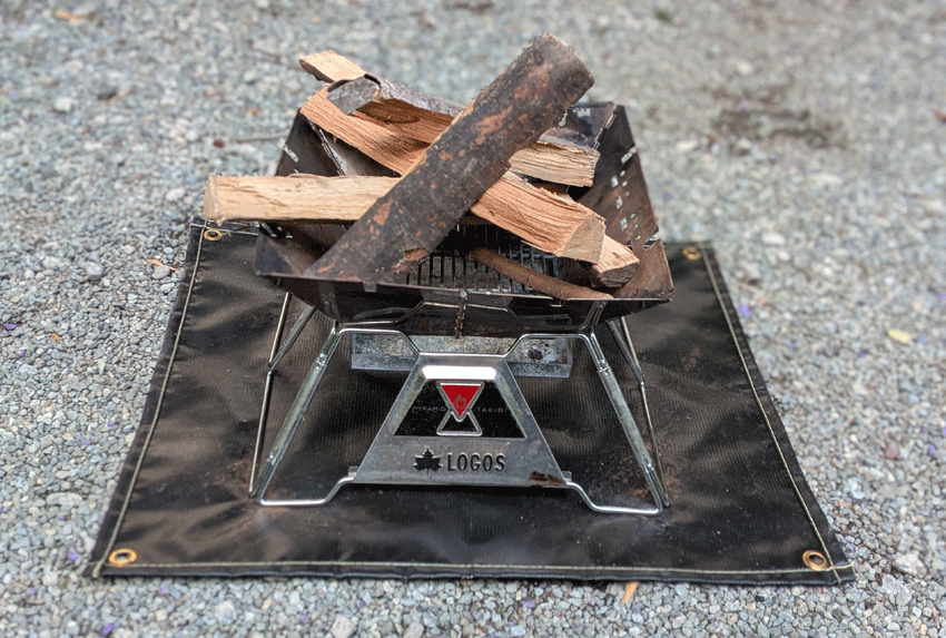 テントに戻ると17時前。厚木市の日の入りは18時半くらいなので、暗くなるまでまだ少し時間があります。とりあえず、焚き火の準備だけ済ませて、しばらく外のベンチでひと休み。