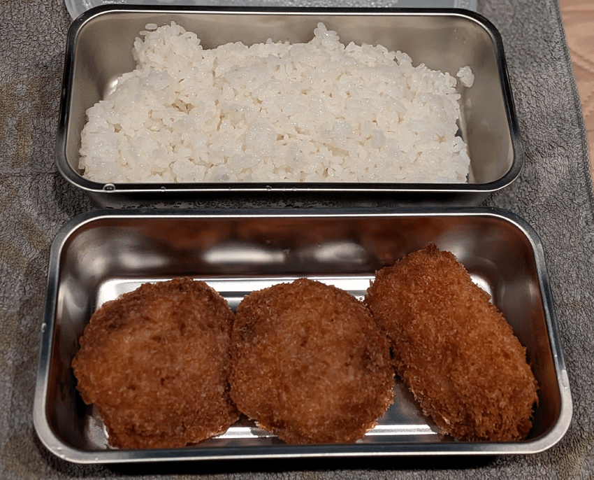 牛タンメンチとクリームコロッケに大盛りライスを添えて。やはり水蒸気で温めるので、熱々にはなれどサクサクにはならず。まぁ当たり前です。でも美味しかった。ごちそうさまでした。