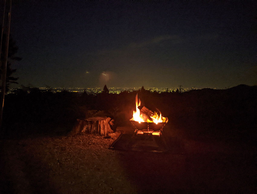 ちなみに、焚き火の向こうに広がる夜景はこんな感じ。