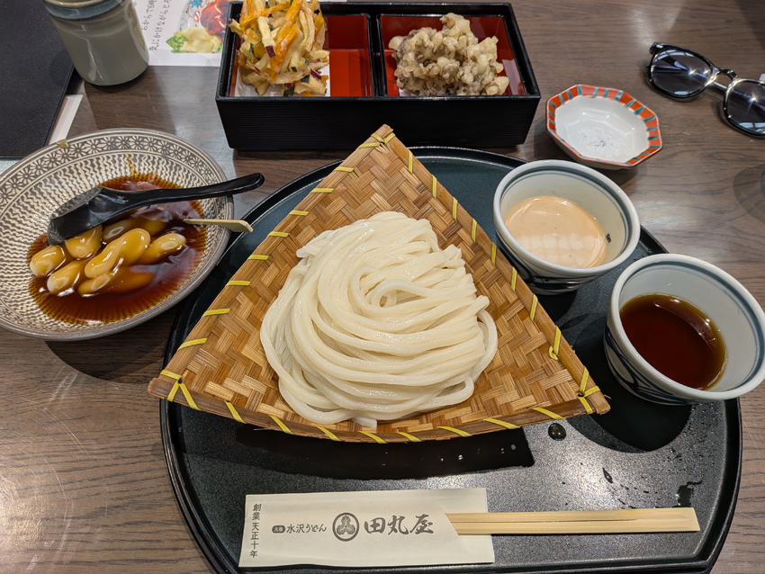 群馬に向かって車を走らせ、渋川伊香保ICで高速を降り向かった先は、水沢うどんの名店「田丸屋」さん。本日もキャンプ場の前に昼メシです。