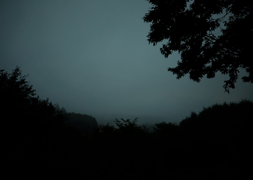 何も見えません。まるでホラー映画。何も見えないどころか、いよいよ雨が降り出しました。しかも結構な勢いで。これはもう、今夜の夜景や星空はダメそうです。さっさと諦めてテントでお籠もりタイムに。