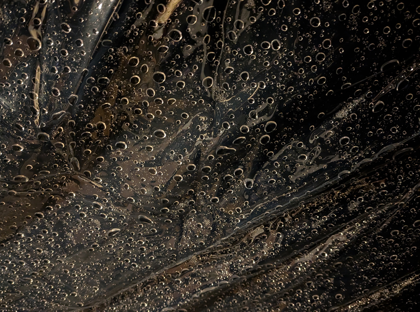 なんだか天井が圧迫されてひん曲がっています。急いで外に出てみると、立ち上げてたキャノピーに大量の雨が溜まり、その重さでテント全体が傾いてしまっていました。