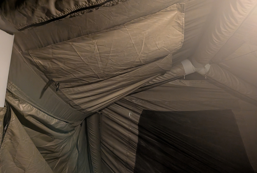 すぐに溜まった水をすべて下に流し、キャノピーを通常モードに戻すと、傾いてたるんでいた屋根も元通りに。危なかったです。少なくとも、天候が怪しい時は、寝る前にキャノピー降ろさないとダメなのですね。また僕のキャンパーレベルがアップしました。