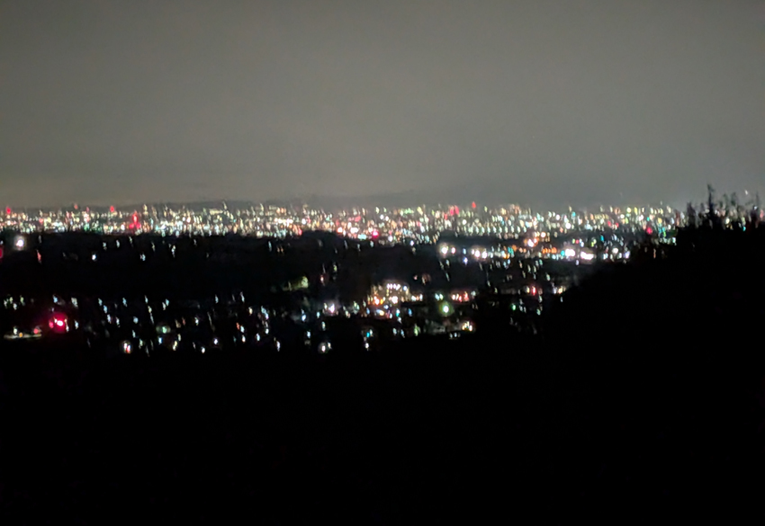 写真を撮りがてら、トイレに行ったら、テントへ戻る最中にまたまた土砂降りに。最悪。そしてまた夜景が見えなくなっているという不運。いや、むしろこの一瞬を突いて夜景が見れたことを幸運と呼ぶべきか。