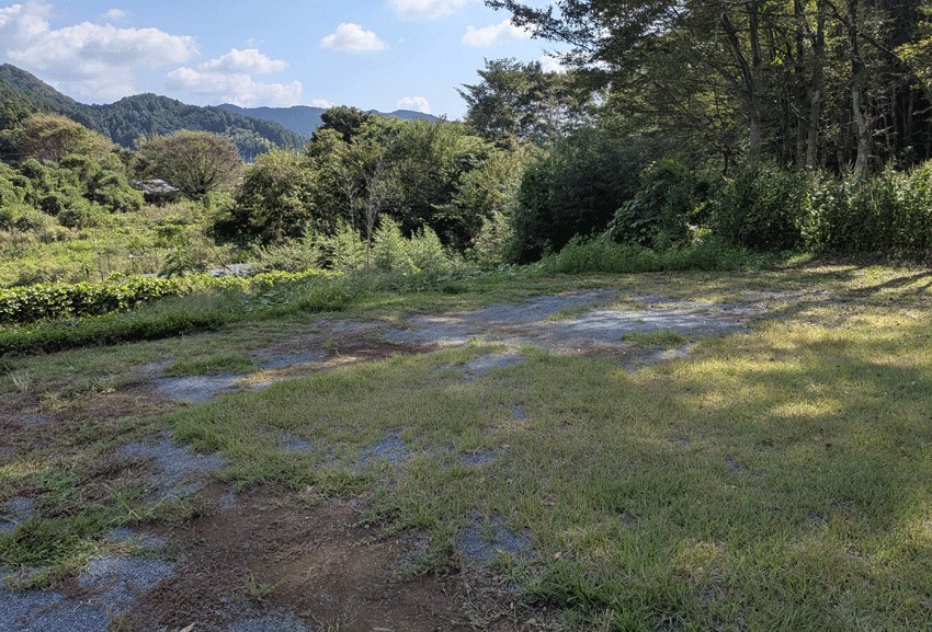 確かに奥まっているものの、外側に向けて設営すれば目の前には山と空。特に後ろや隣りのテントも気にならない感じで、意外と悪くないです。