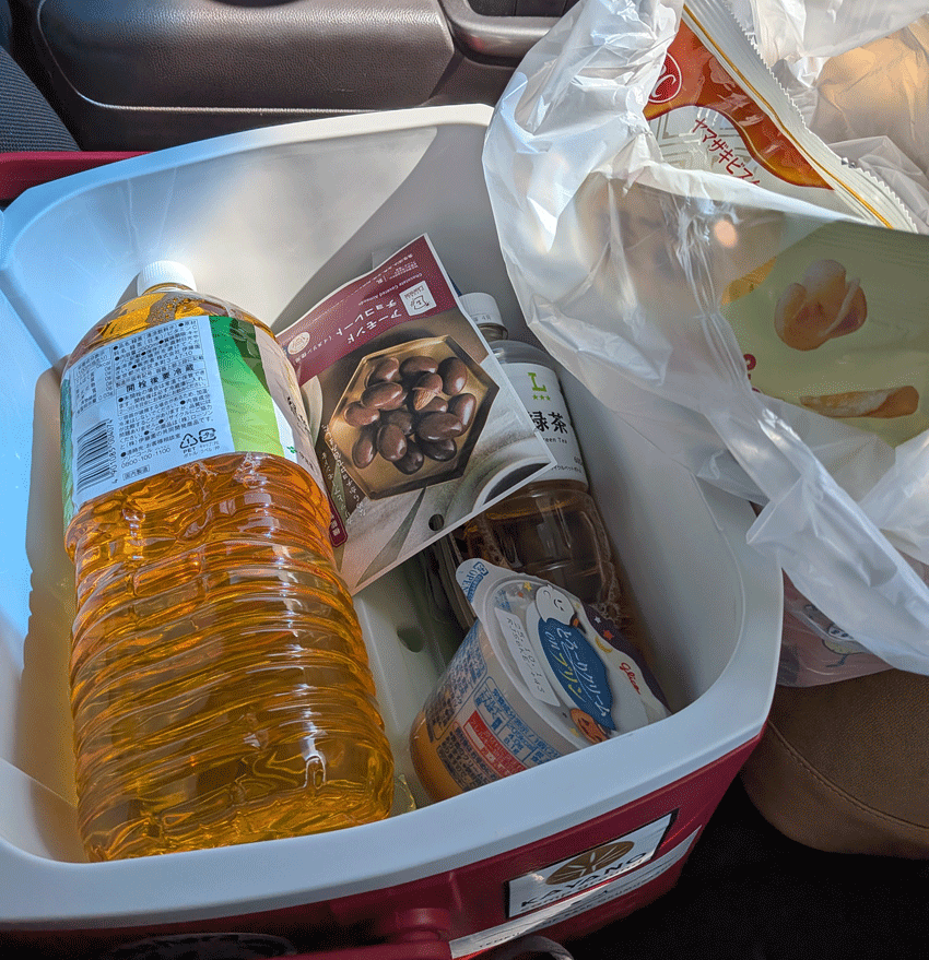 カレーで腹を満たし、キャンプ場に戻りがてら、コンビニでお買い物。キャンプ場に色々売っているみたいだったので、事前に何も買わずに行ったのですが、お茶のペットボトルが売っておらず、結局買い出し。