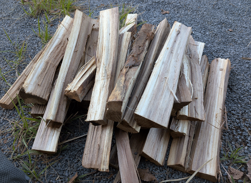 両手の握力を使い切りました。普段YouTubeで見ていた華奢な女性ユーチューバーたちが、余裕シャクシャクでスコンスコンやっていたので、正直かなり舐めてました。木はとても硬い。僕のキャンパーレベルがまたひとつ上がりました。