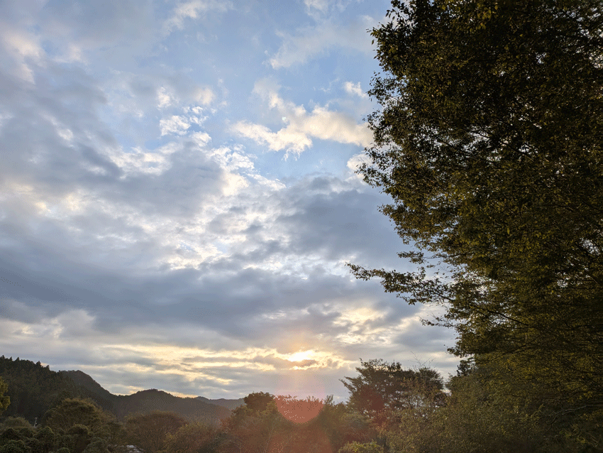 準備完了。まだ少し明るいのでしばらく待ち。方角的に夕焼けはあまり見えず。残念。