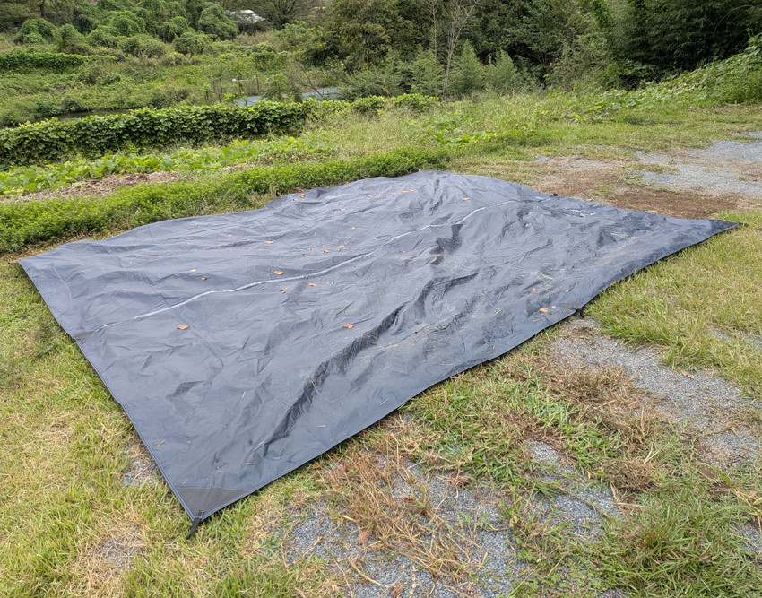 朝飯をサクッと終わらせ、焚き火の後処理やらテント内の掃除やら、もろもろの片付け作業を終えて、最後にテントを撤収。びちゃびちゃのグランドシートを乾かしてオールアップです。