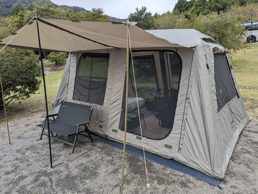 そんなわけで、本日のぼっちステージも決まったので、早速テント設営に。いつものエアテントをサクッと立てて、車から荷物をテントの中に運び込みます。今まで汗だくでやっていたのが嘘みたいに、とてもとても涼しい。なんなら寒い。なるほど。こうやって夏キャンプから秋キャンプへと移行していくのですね。