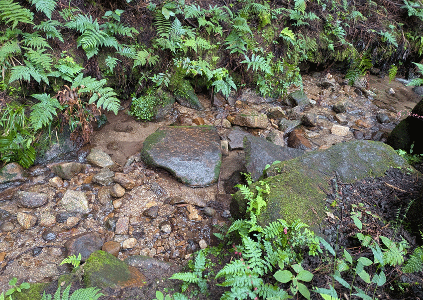 少し歩くと突き当たりに小さな小川が流れており、散策道もそこで終了。渓流ってほどでもありませんでした。
