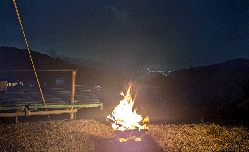 今までのキャンプ場に比べて、街の光が近く迫力のある夜景で、人気になるのも納得です。星空とのセットで見れないのは残念ですが、まぁ仕方なし。雨が降らなかっただけマシです。