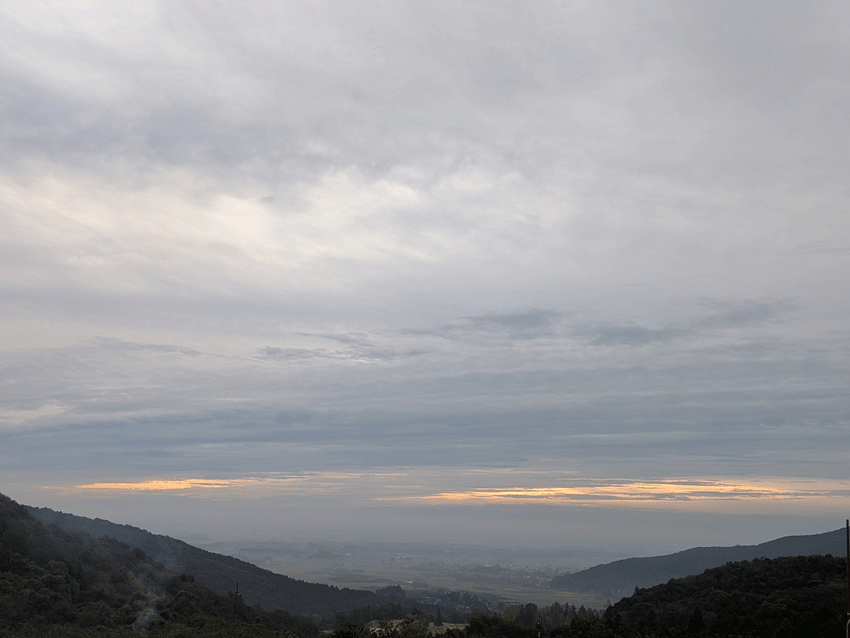 そんなこんなで6時頃にはだいぶ明るくなってきましたが、雲が多いのと、方角的に山に隠れていたのか、結局日の出は見えず。