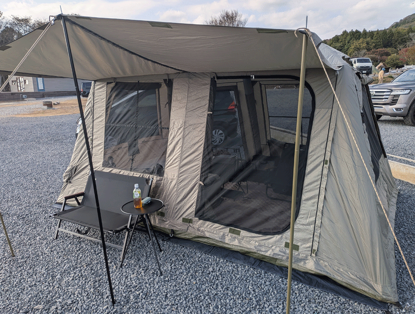 そんなこんなで、いつものようにいつものエアテントをシュコシュコと設営してまったりタイム。