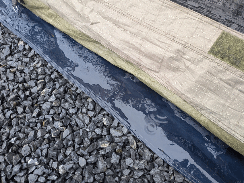 あっという間にパラパラがザーザーに変わり、テントの下もビショビショで意気消沈。とりあえず中の物の片付けをしながら雨が弱まるのを待ちます。