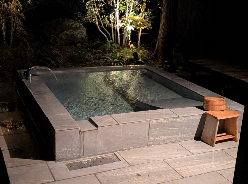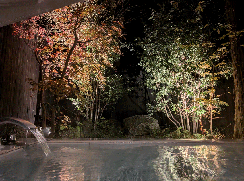 貸切露天風呂最高。今回は夜でしたが、朝とか昼も開放感あって良いと思います。