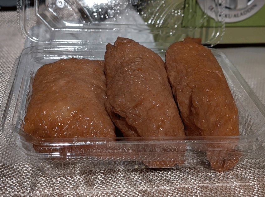 いなり寿司3個入り。カップラーメン1個はちょっと重たい今の僕にとって、まさにちょうど良いボリューム。最高のチョイス。
