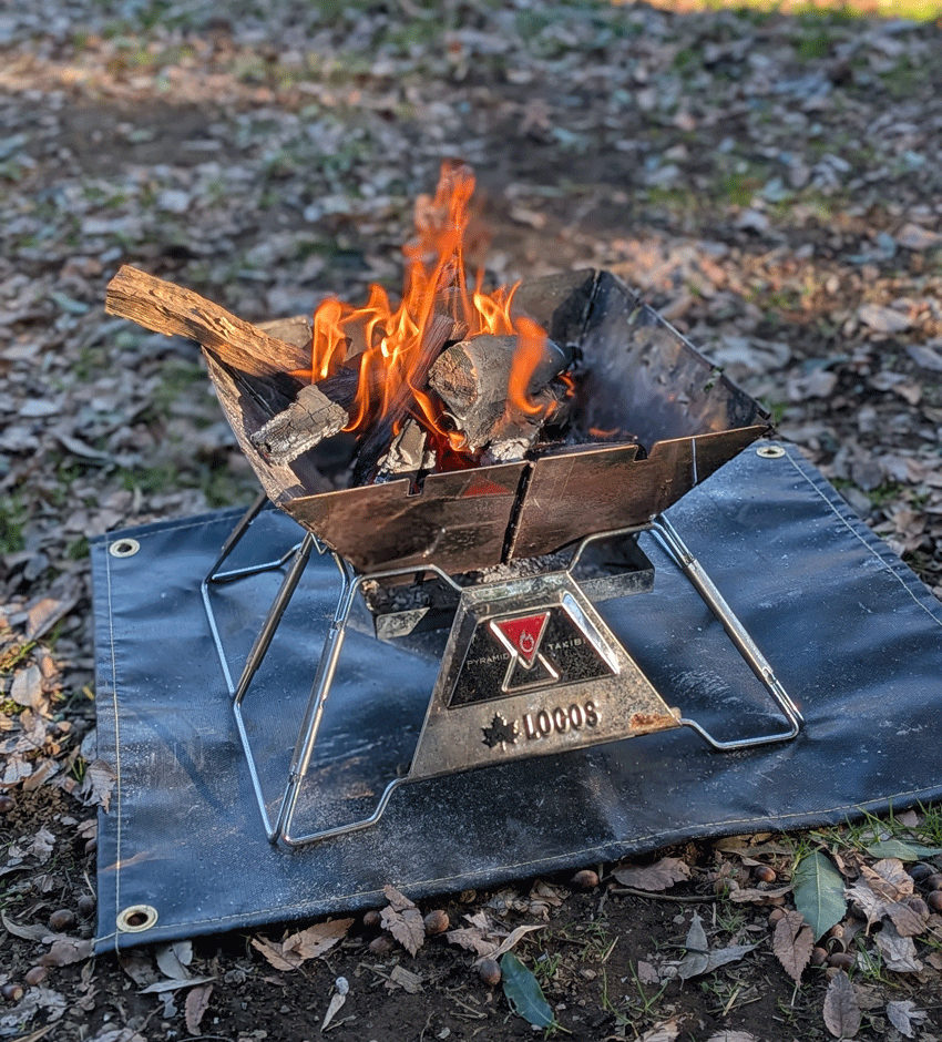 とりあえず、デイキャンプということで、あまり時間もないので、さっそく義務感バリバリの焚き火タイムに。